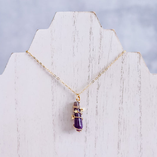 Amethyst Wrapped Pendant Necklace