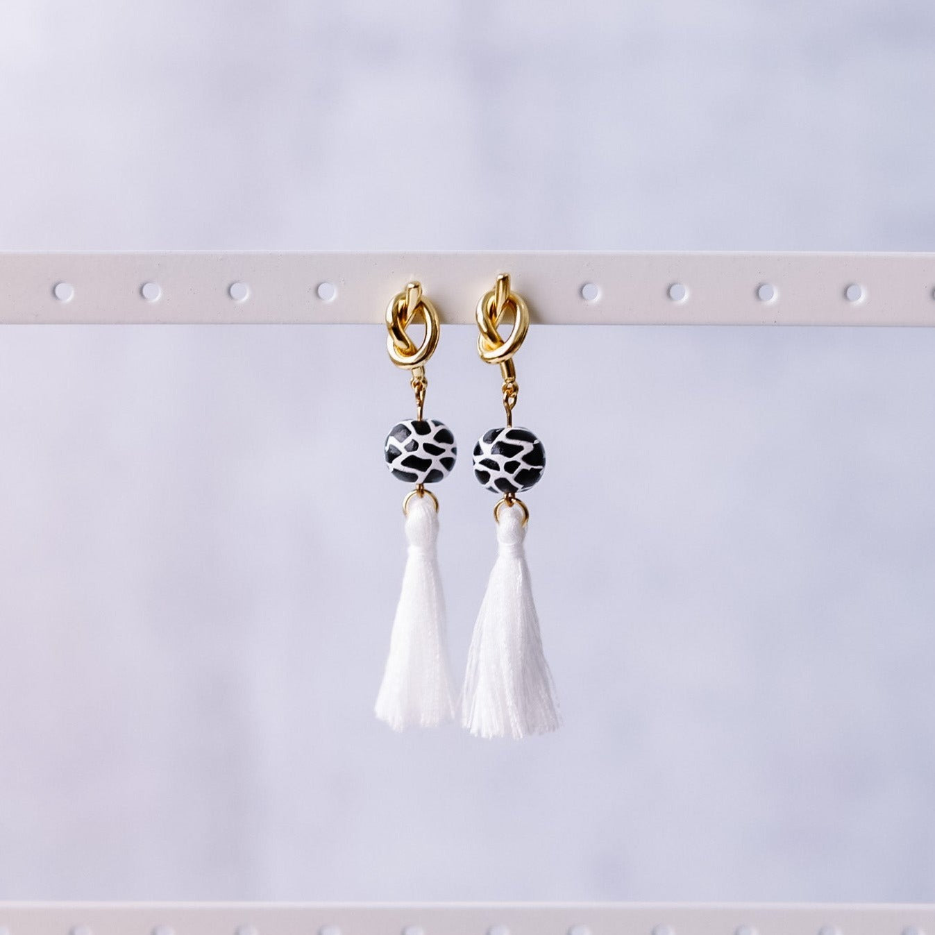 COW PRINT TASSEL EARRINGS