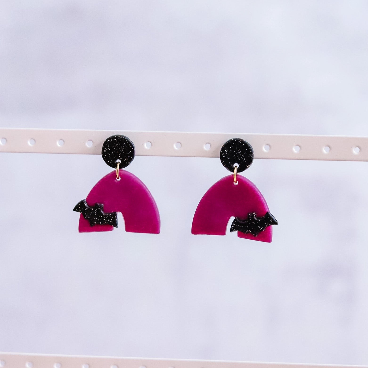 PURPLE & BLACK BAT ARCH EARRINGS